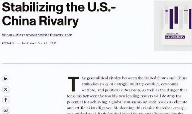答案,或许并不在釜山的会场里,而在一份几乎同期发布的、 长达115页的重磅报告中, 这份报告,就像一面镜子,清晰地照出了美国对华战略深层次的逻辑变迁。 这份名为《稳定美中竞争》的报告,出自大名鼎鼎的兰德公司,在美国,兰德公司可不是一般的智库,它长期以来被外界视为美 国的“影子政府”, 是传统鹰派思想的策源地之一。